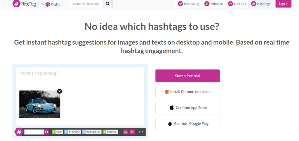 RiteTag is a hashtag suggestion tool that provides instant hashtag recommendations for texts and images across desktop and mobile platforms. It helps users identify relevant hashtags based on real-time engagement data, making it easier to optimize social media posts for platforms like Instagram and Pinterest.